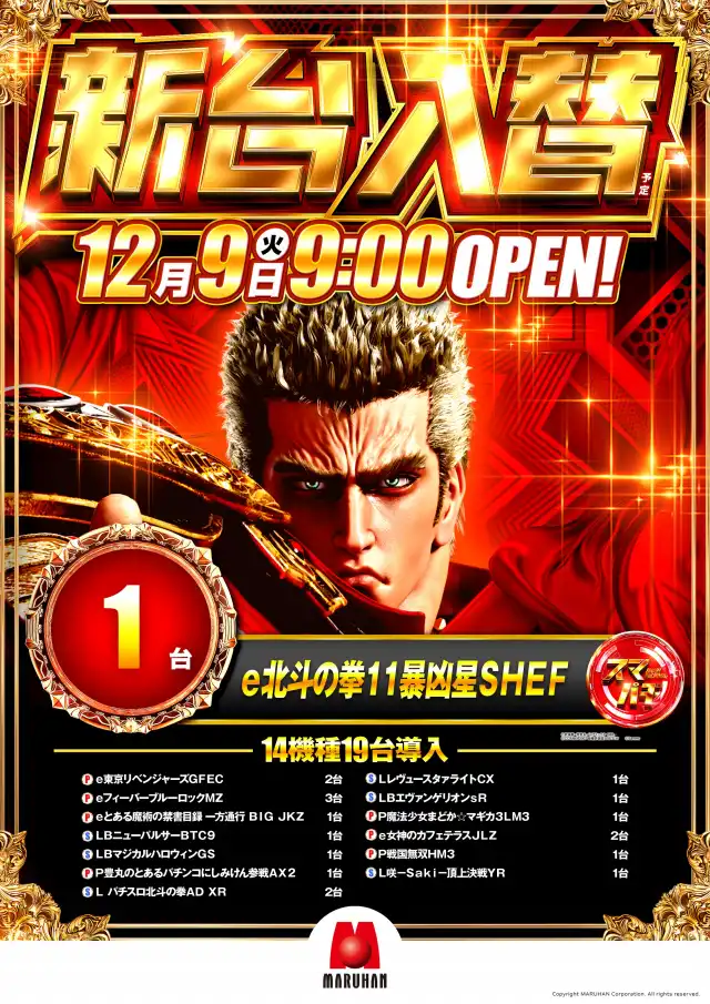本日新台入替12機種18台導入予定♪朝9時開店♪