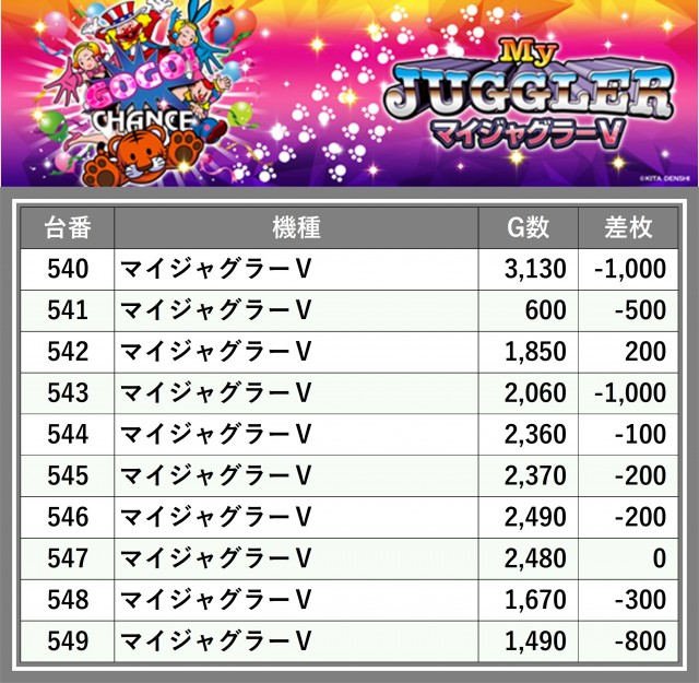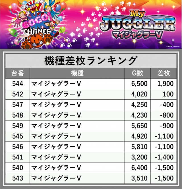 厳選された取材対象機種をはじめ、その他スロット全体から好記録が飛び出した!プレイヤーが楽しんだ1日を下記データにて振り返ってみて欲しい。