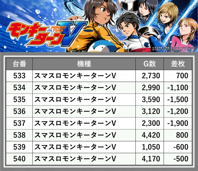 厳選された取材対象機種をはじめ、その他スロット全体から好記録が飛び出した!プレイヤーが楽しんだ1日を下記データにて振り返ってみて欲しい。
