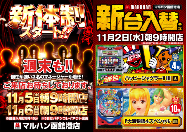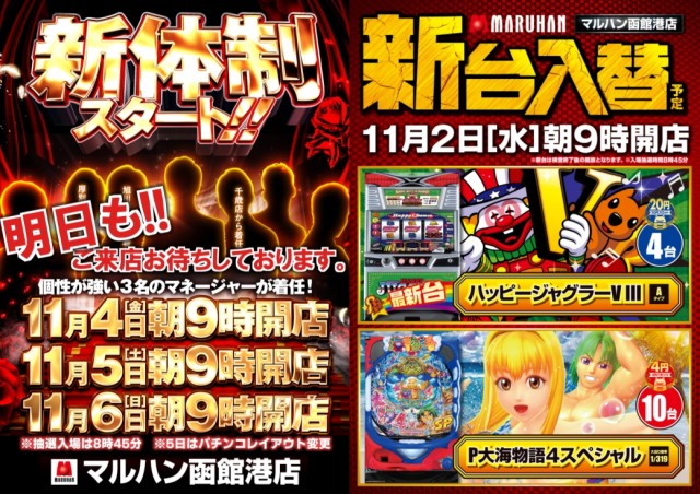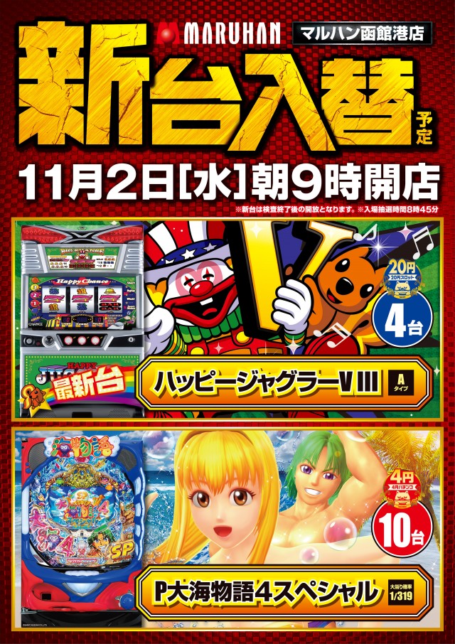 ココロオドル11月 新台入替×朝9時開店 入場抽選8:45