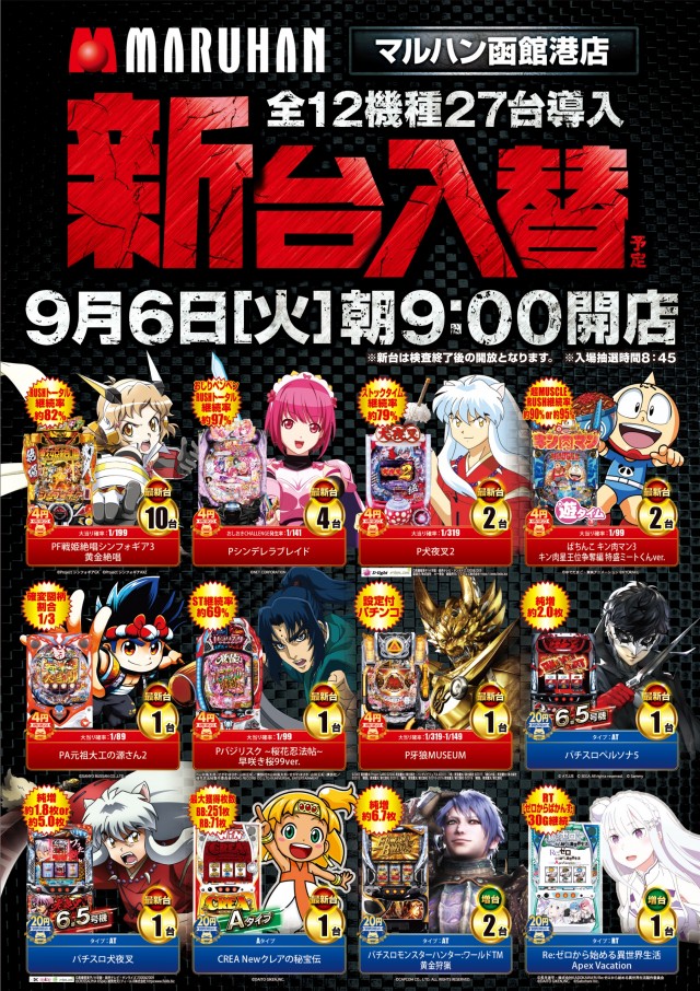 9月6日(火) 新台入替×朝9時開店 入場抽選:8時45分