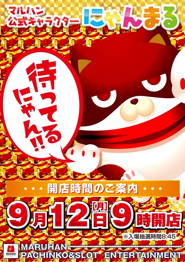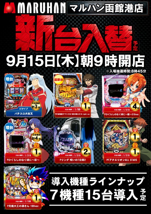 9月15日(木) 新台入替×朝9時開店 入場抽選:8時45分