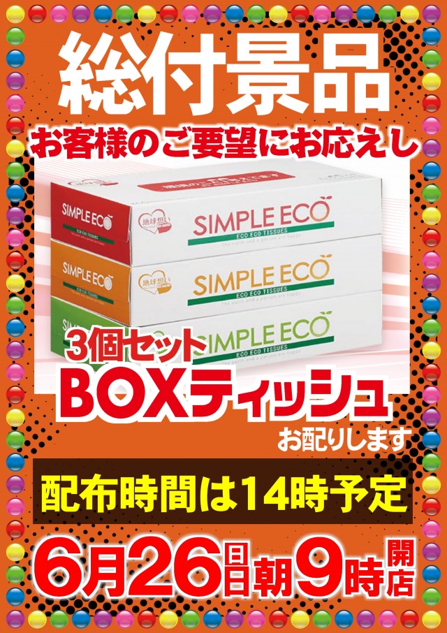 6月26日(日)朝9時開店×総付景品配布♪