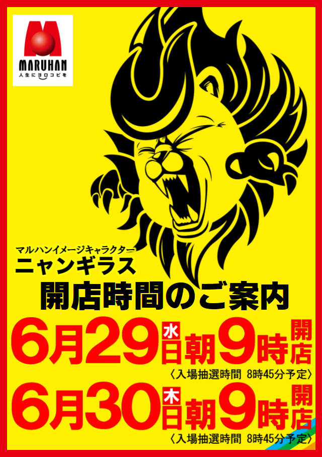 6月20日(月)朝9時から営業! ※入場抽選8時45分