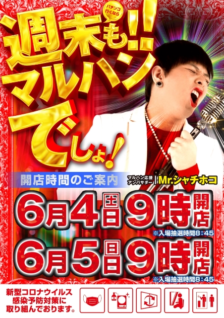 6月はじマル!2日(木)【新台入替】× 朝9時から営業!