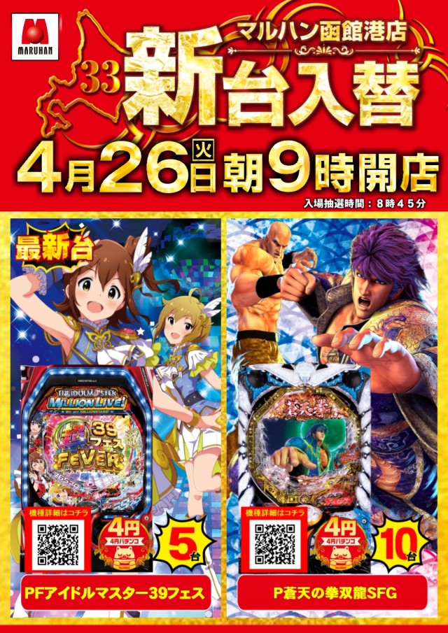 4月26日(火)【新台入替】朝9時開店 ※入場抽選8時45分