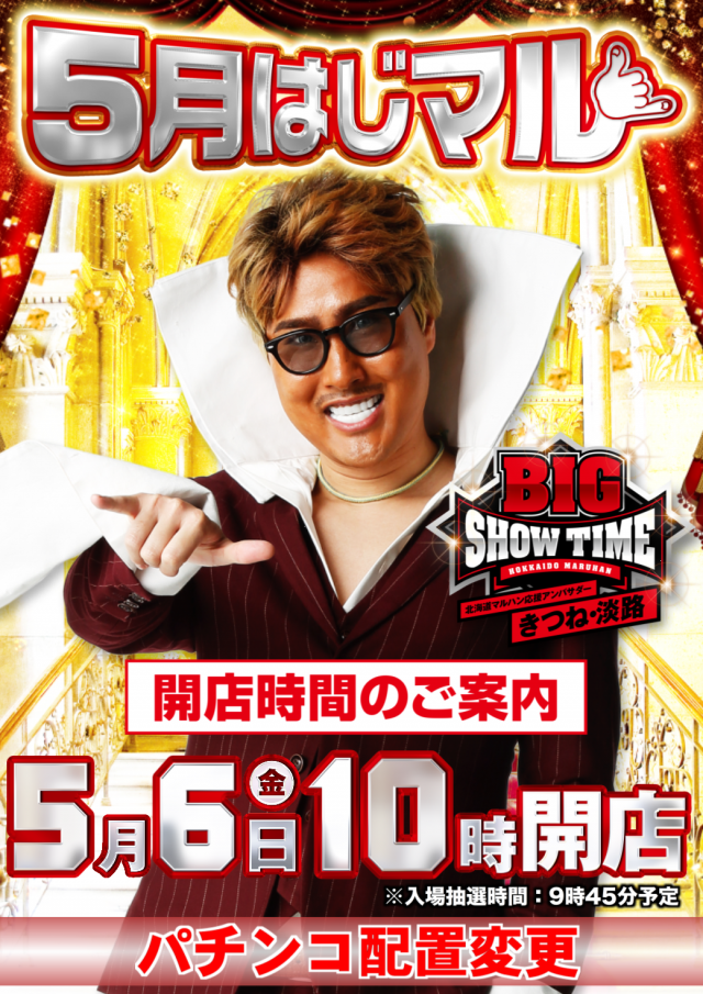 5月6日(金)朝10時開店 ※パチンコ配置変更