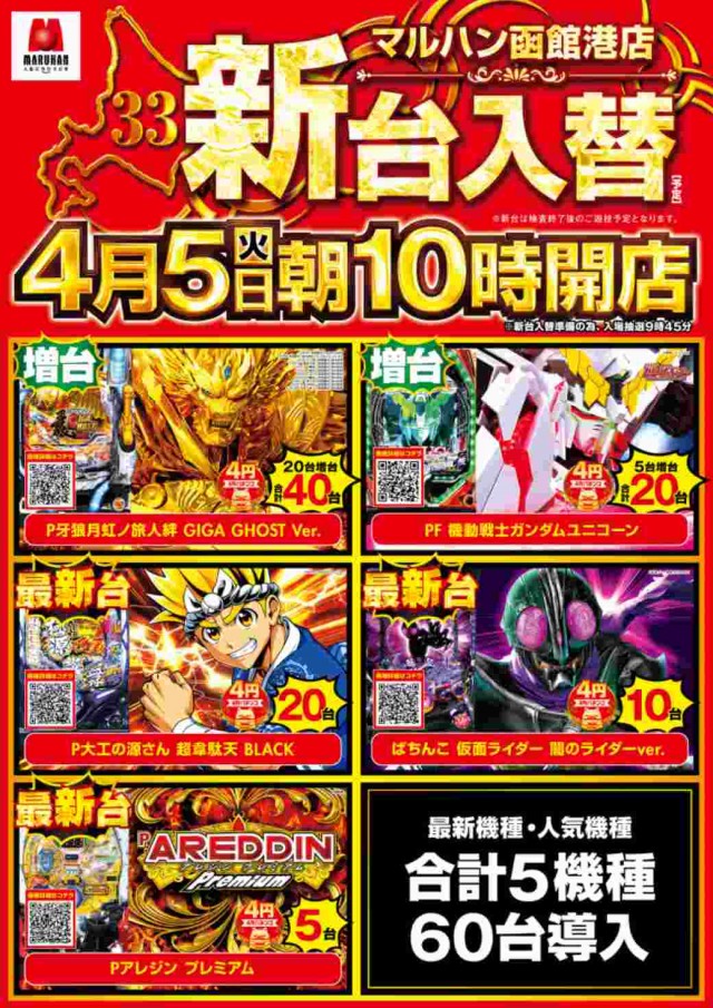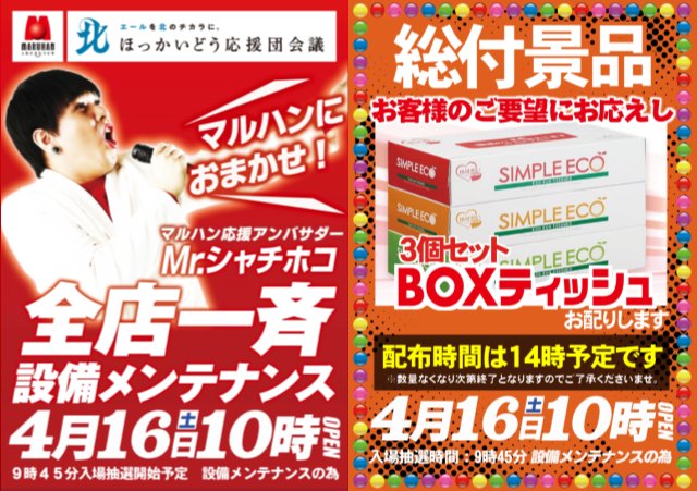4月22日(金)北海道マルハン全店一斉設備メンテナンス