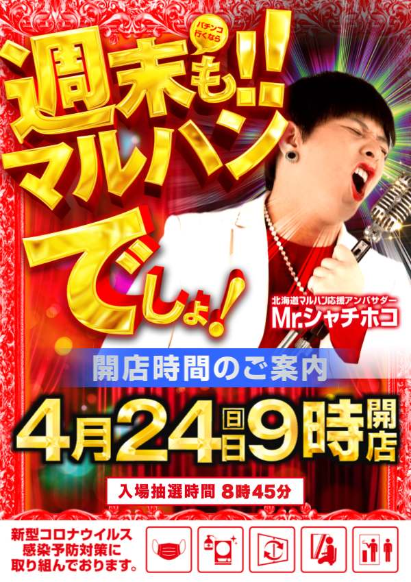 \4月24日(日) 9時開店/ 週末もマルハンでしょ!