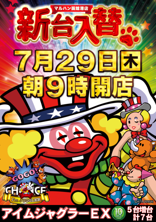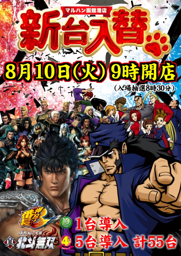 8月4日(水)9時開店 【新台入替】9機種38台導入