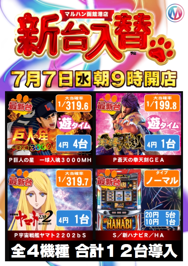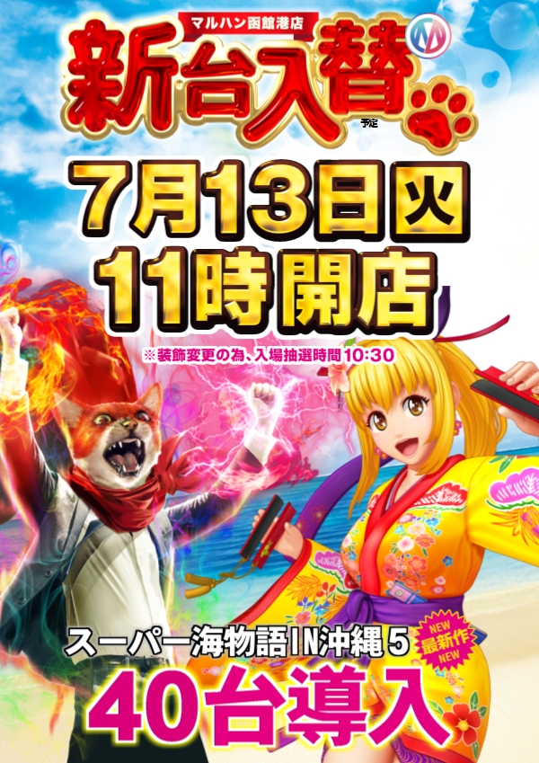 明日【新台入替】11時開店 入場抽選は10時30分からです
