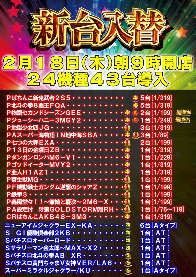 【新台入替】朝9時開店 抽選時間は8時30分からです!