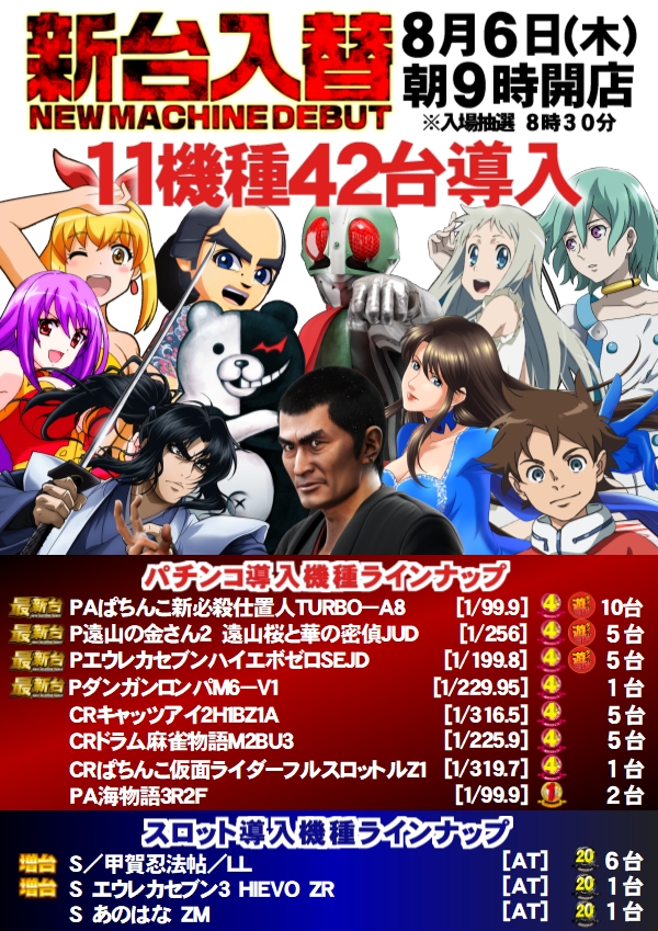 本日【新台入替】 朝9時開店【6機種16台導入】