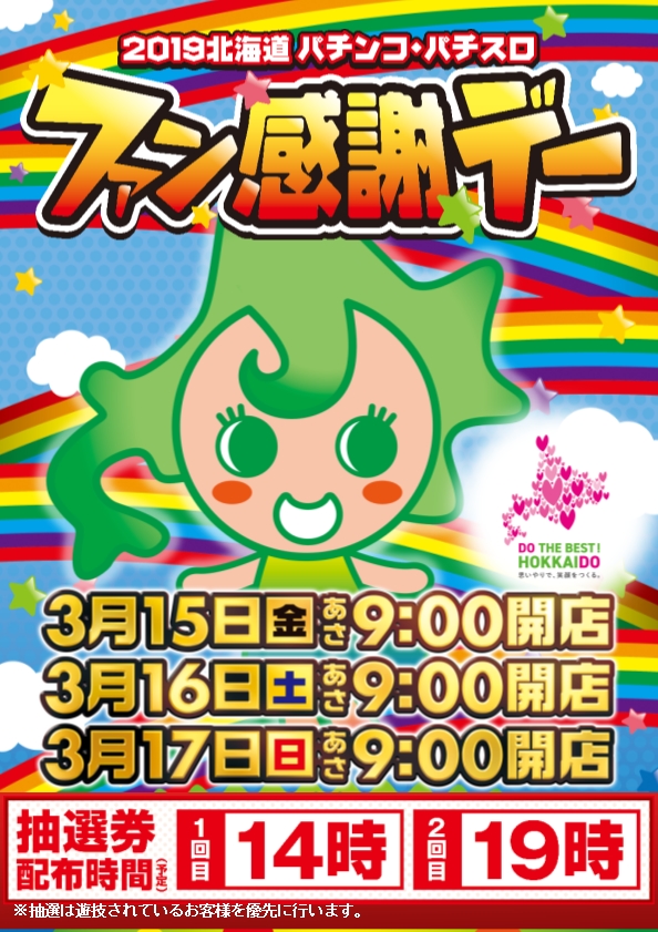 【マルハン函館港店】本日9時開店~ファン感謝デー~