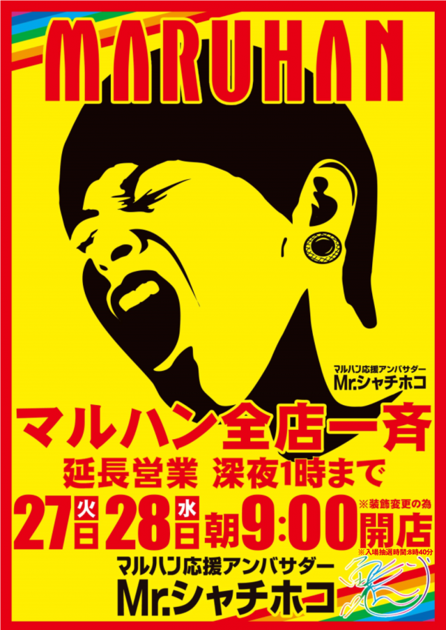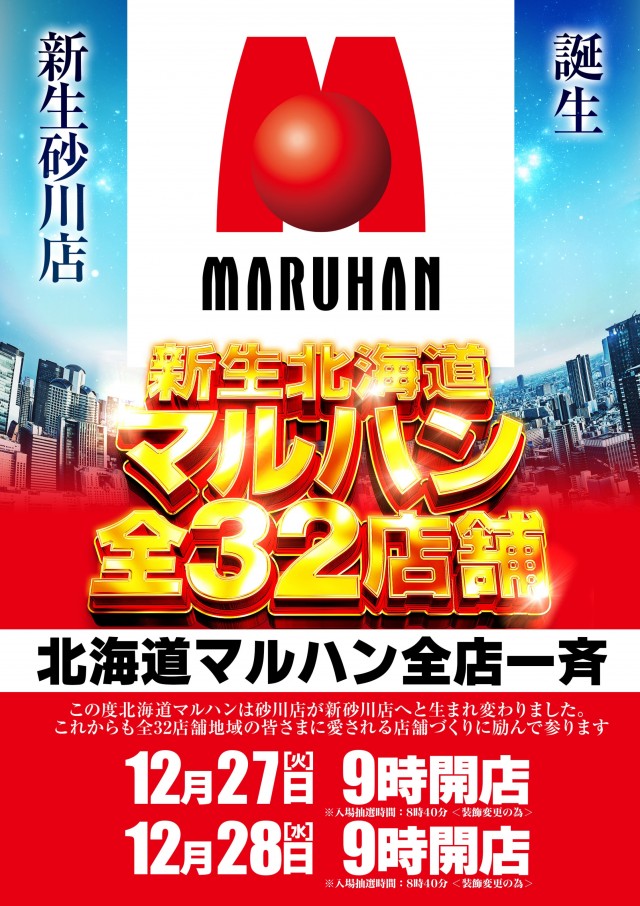 \北海道マルハン全店一斉設備メンテナンス/ 朝10時開店!!