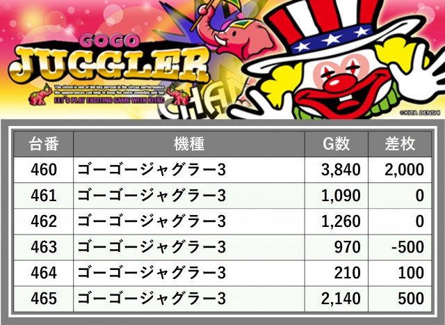 厳選された取材対象機種をはじめ、その他スロット全体から好記録が飛び出した!プレイヤーが楽しんだ1日を下記データにて振り返ってみて欲しい。