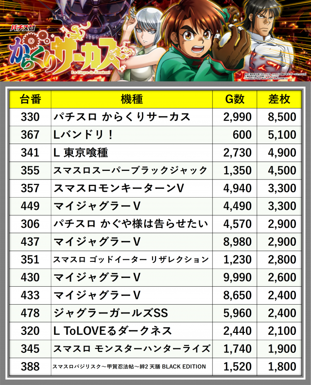 ※記事内の差枚表記はぱちタウン独自調査に基づくものです。ご了承ください。