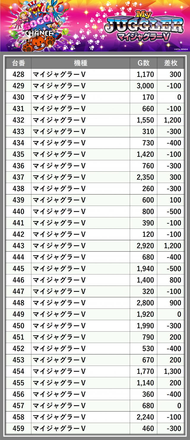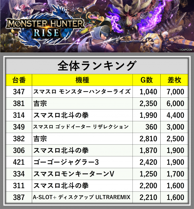 厳選された取材対象機種をはじめ、その他スロット全体から好記録が飛び出した!プレイヤーが楽しんだ1日を下記データにて振り返ってみて欲しい。