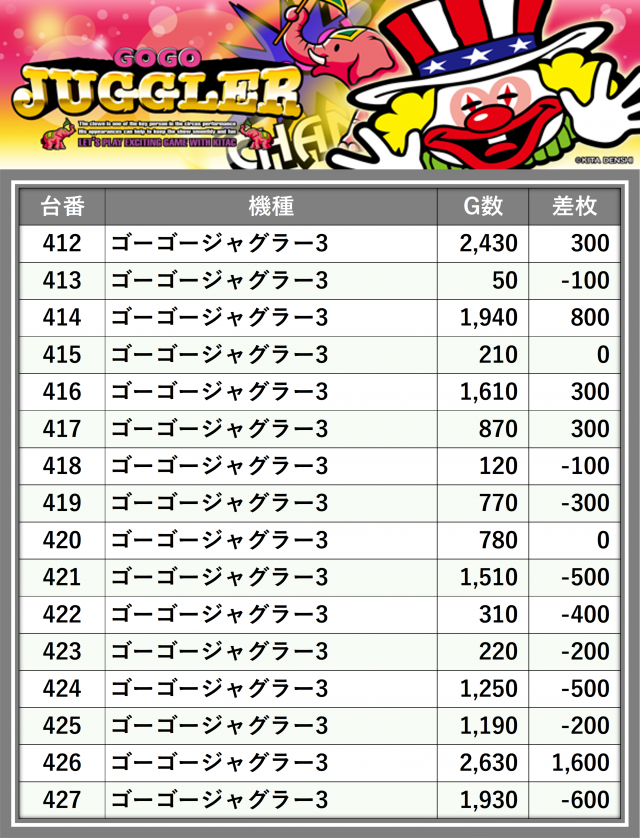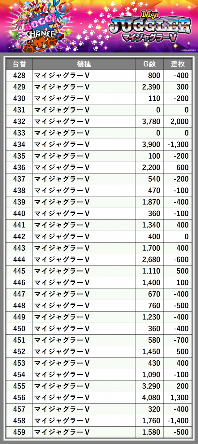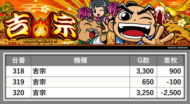 厳選された取材対象機種をはじめ、その他スロット全体から好記録が飛び出した!プレイヤーが楽しんだ1日を下記データにて振り返ってみて欲しい。
