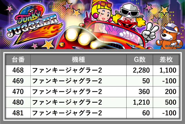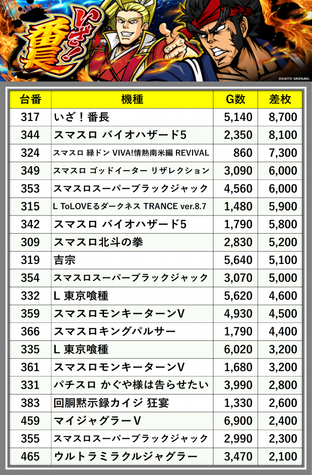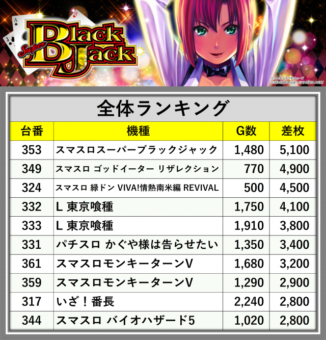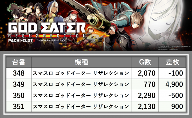 厳選された取材対象機種をはじめ、その他スロット全体から好記録が飛び出した!プレイヤーが楽しんだ1日を下記データにて振り返ってみて欲しい。