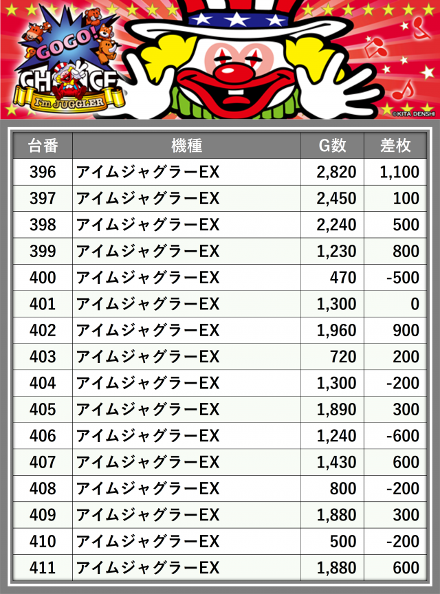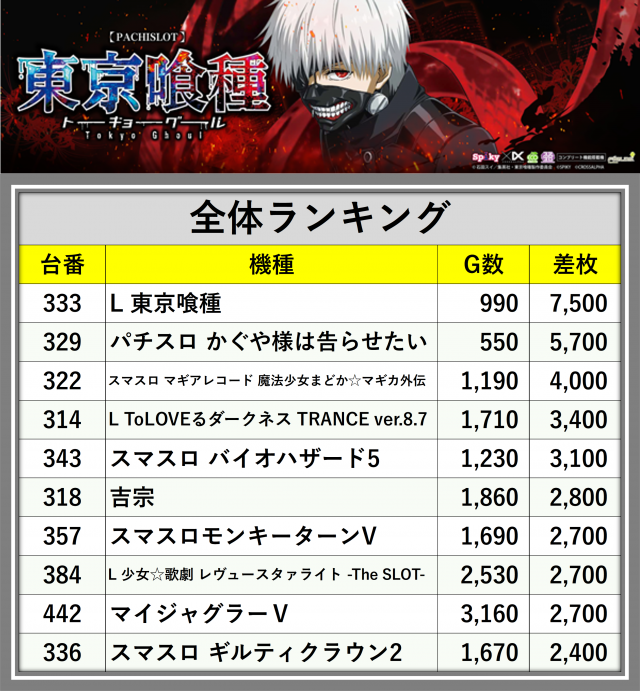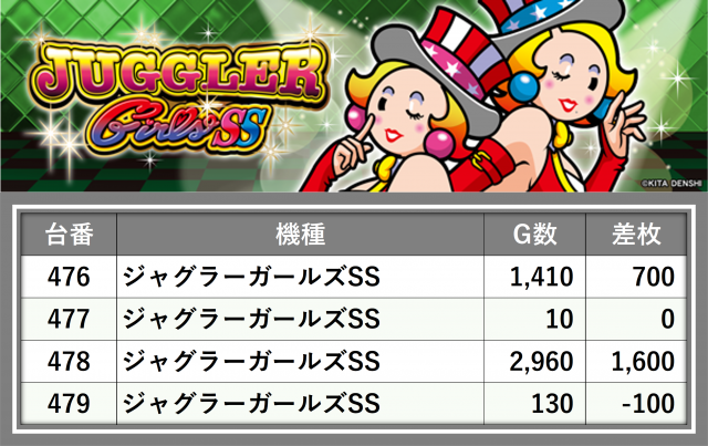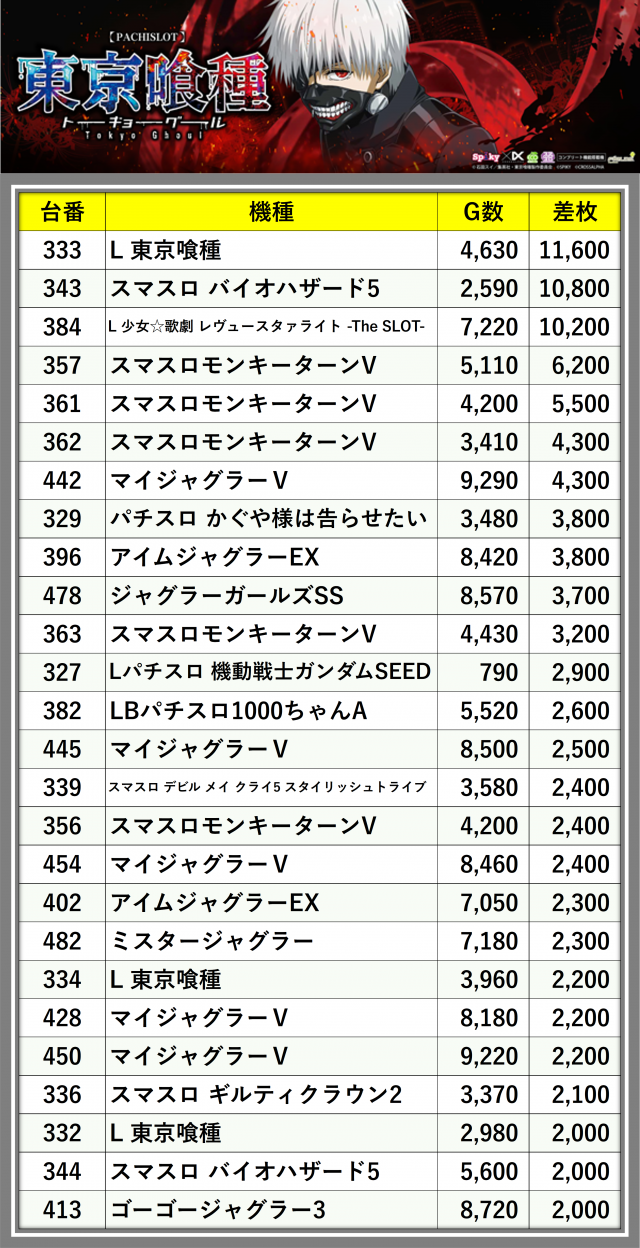 厳選された取材対象機種をはじめ、その他スロット全体から好記録が飛び出した!プレイヤーが楽しんだ1日を下記データにて振り返ってみて欲しい。