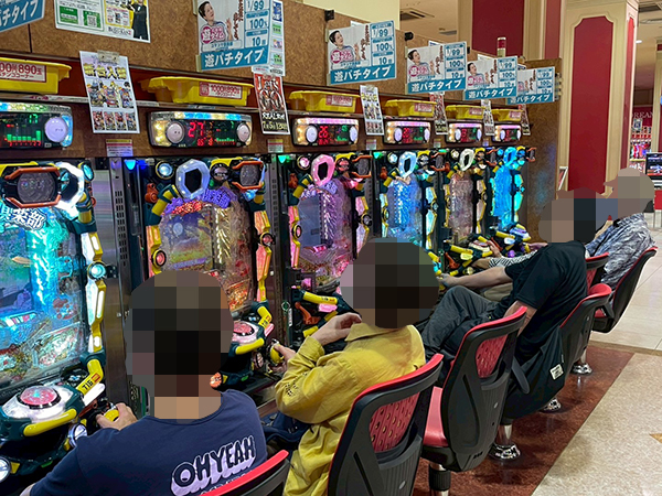 店内では貸し玉料金を問わず様々な機種で、心ゆくまで楽しむプレイヤーの姿が見られた。