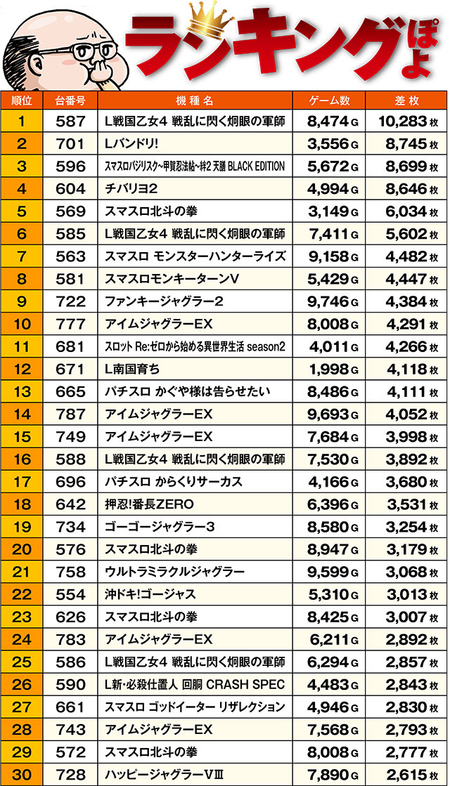 トータル差枚ランキング…ぽよ!