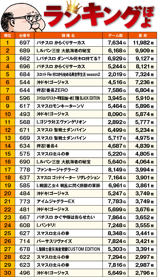 トータル差枚ランキング…ぽよ!
