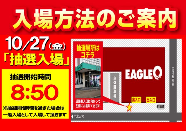 明日!イーグルオーは!10/14 朝9時開店! 抽選8:45
