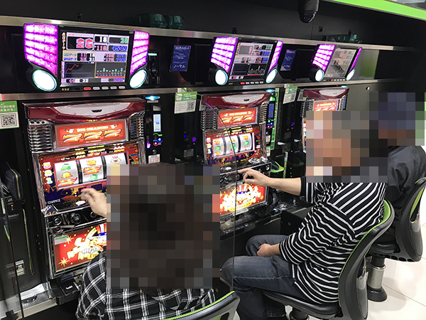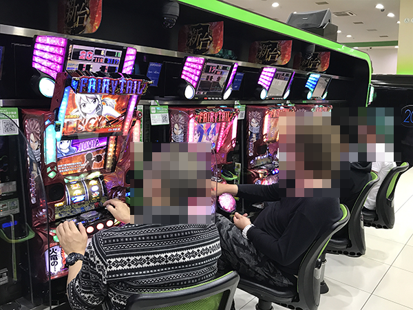 「バジリスク~甲賀忍法帖~絆」や「アナザーゴッドハーデス」、新台の「パチスロ FAIRY TAIL」なども明るいムード。イキイキとした表情で遊技をおこなう姿からは、有意義な時間を過ごしていることも伝わってきた。