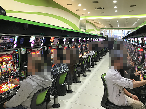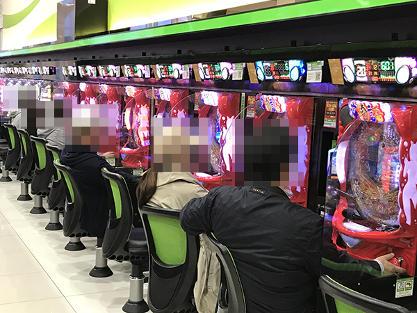 取材時の店内をみると、パチンコとパチスロの両方が大勢のプレイヤーでにぎわっていた。