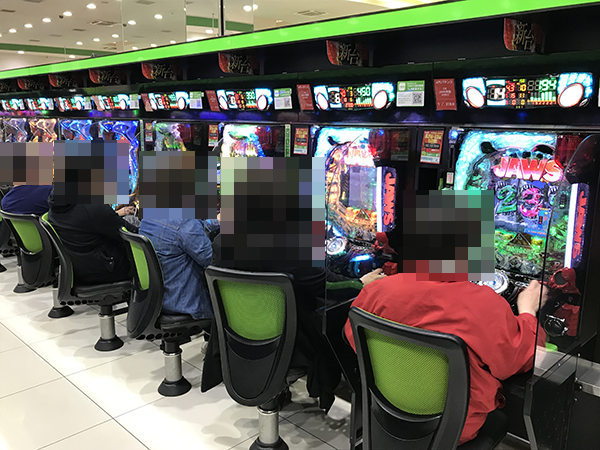 さまざまな機種が支持を受けている4円パチンコでは、「CR JAWS再臨-SHARK PANIC AGAIN-」などの新台や定番の海物語シリーズが高稼働。楽しげな様子で遊技をおこなう姿も印象に残っている。