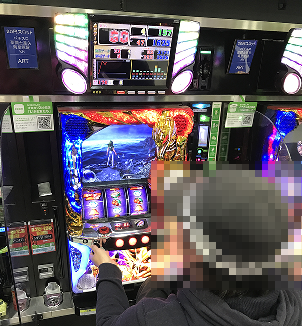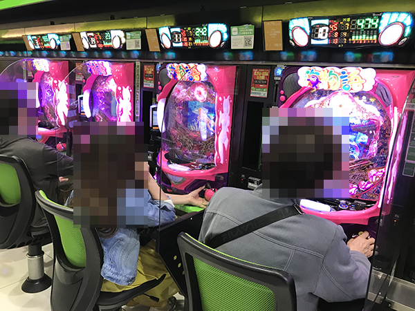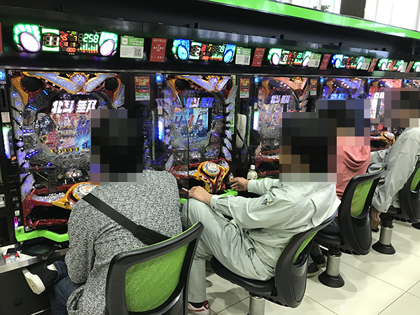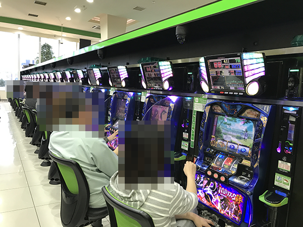 1円パチンコの海物語シリーズや5円パチスロの「パチスロ 黒神 The Animation」などに、イキイキとした様子で遊技をおこなう姿があった。