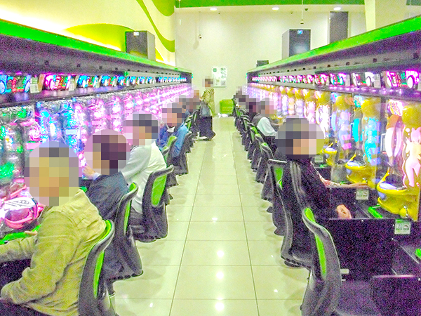 1円パチンコは海物語シリーズを中心に高稼働。特に「CRAスーパー海物語IN沖縄4withアイマリン」では機種の醍醐味を存分に味わうプレイヤーが多く、実に微笑ましい光景が広がっていた。