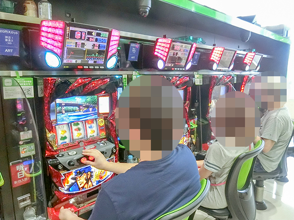 5円パチスロに目を移すと、楽しそうにレバーを叩くプレイヤーの姿をそこかしこで確認することができた。