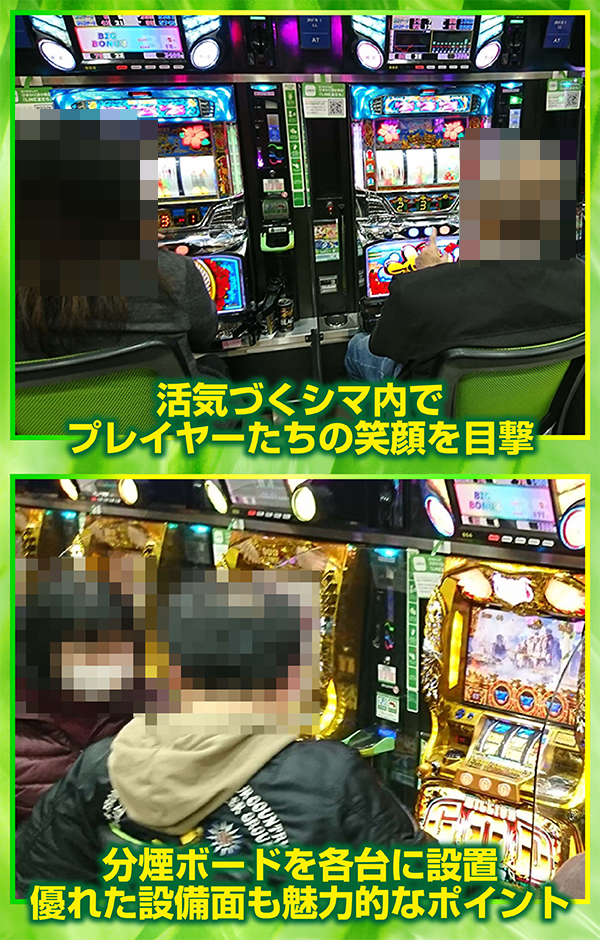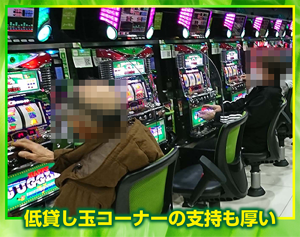5円パチスロでもプレイヤーたちがイキイキとした様子で遊技をおこなっており、シマ内の雰囲気はとても明るい。