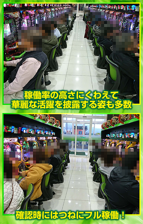 高稼働となっていた「ぱちんこCR真・北斗無双」や新台の「CRルパン三世〜LAST GOLD〜」を中心に、4円パチンコも盛況。たくさんのプレイヤーが活躍しており、あちこちから活気が感じられた。