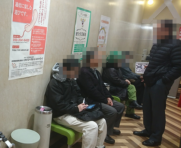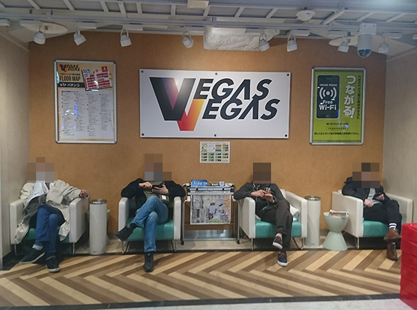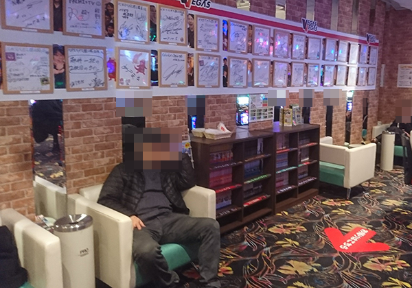 遊技スペースの近くに休憩用のイスが設置されているため、空き台を待つ時間などもリラックスしつつ過ごすことができる。取材中には、プレイヤー同士で楽しそうに会話をしているシーンもあり、あたたかみが感じられた。
