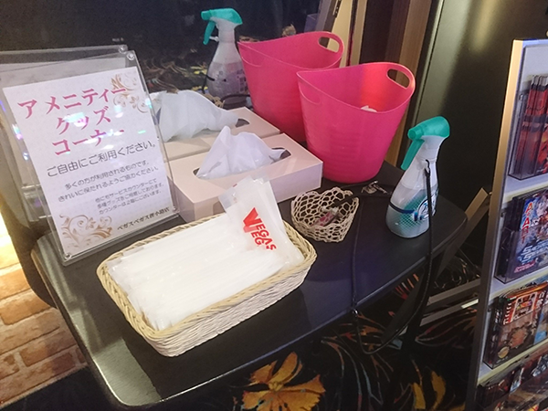 消臭スプレーや綿棒といったアメニティグッズが充実していることも魅力的。マスクやハンドクリームもあるため、乾燥が気になるプレイヤーでも快適に過ごせるように思えた。