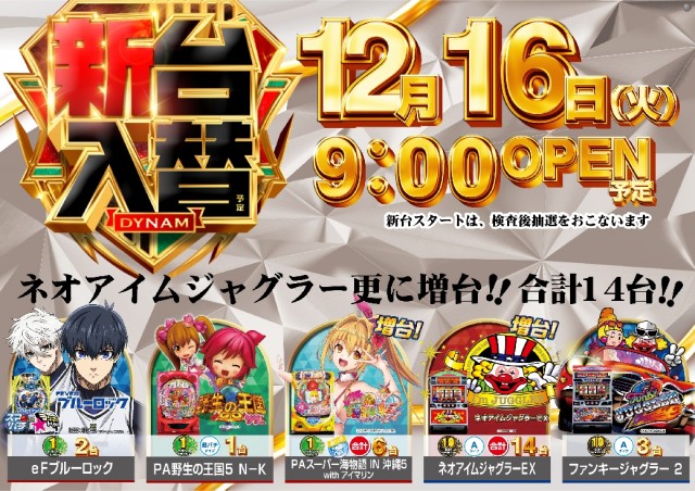 ダイナム北海道北広島店 ゆったり館のお知らせ一覧