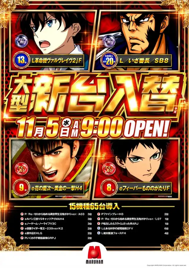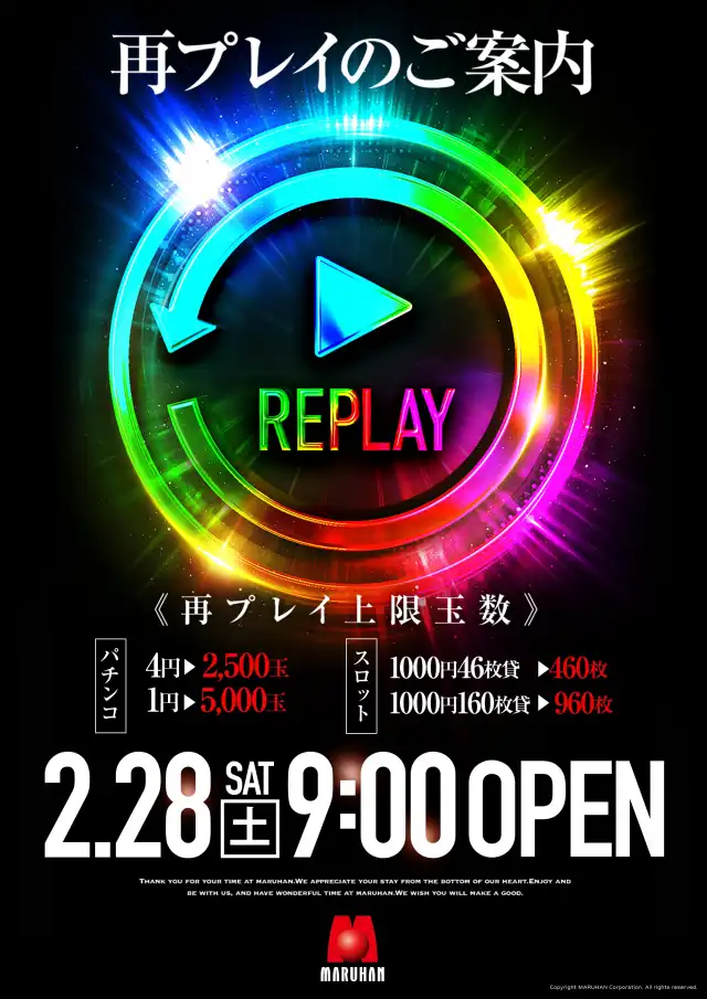本日15時開店!※店内設備修繕の為 お仕事帰りもマルハンへ!