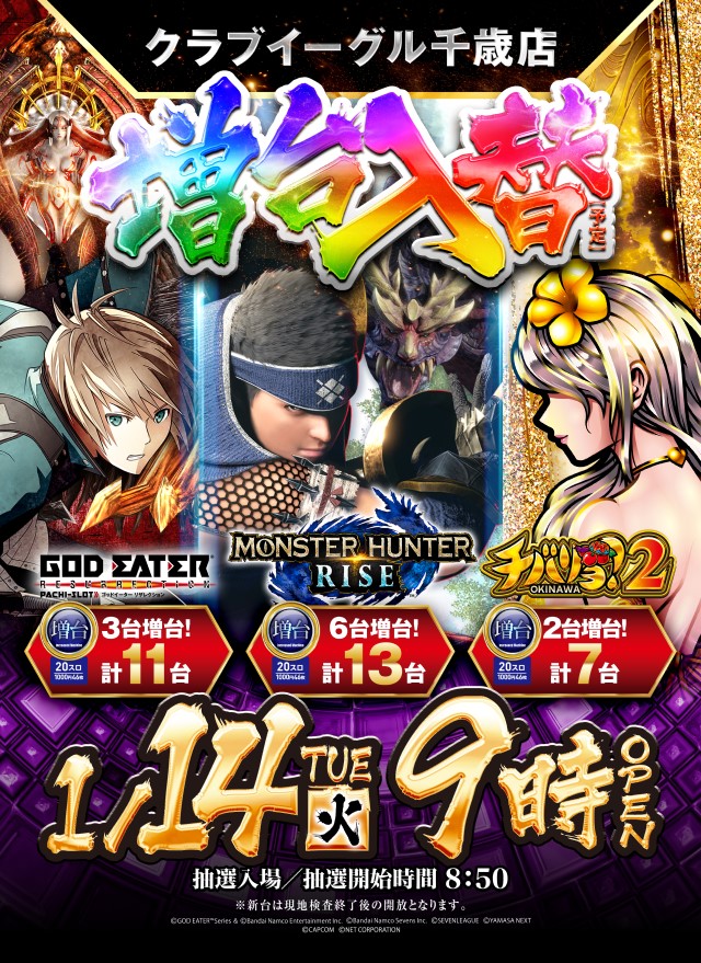1月14日(火)新台入替‼ 3機種おすすめ‼