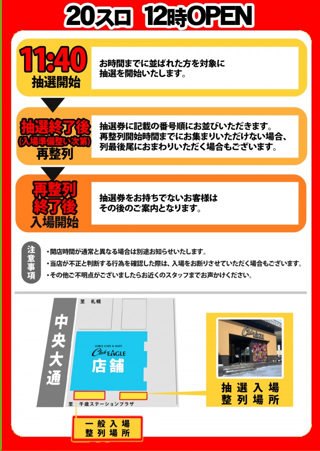 12月12日(木) 20スロ12時開店!6スロ9時開店!