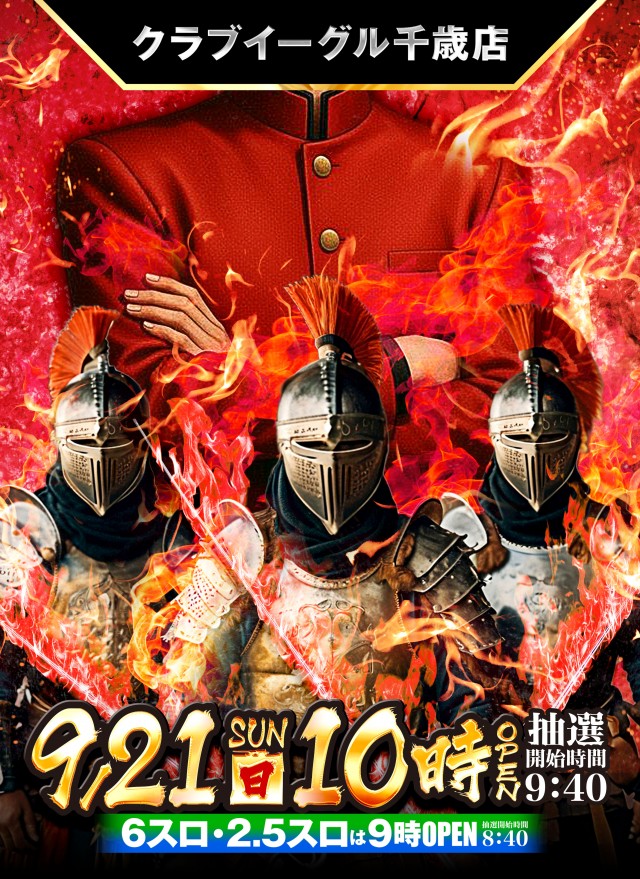 千歳大決戦 9/27(土)20スロ10時開店 抽選9時40分