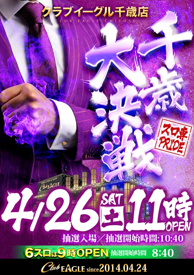 【千歳大決戦】4月26日(土)20スロ11時開店!!