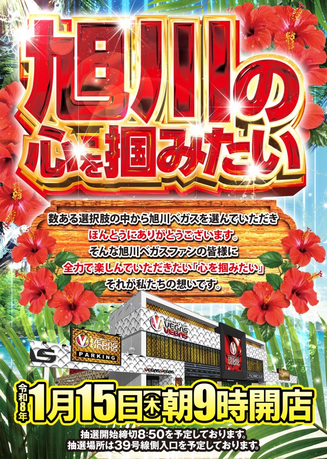 1月15日ベガスベガス旭川店!!朝9時開店!!
