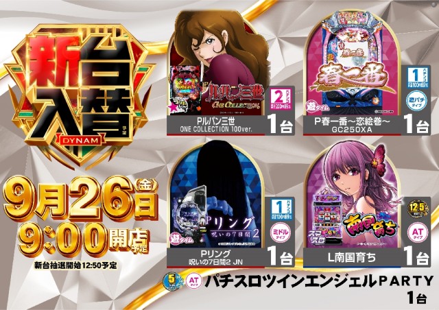 9月26日(金)新台入替(予定)