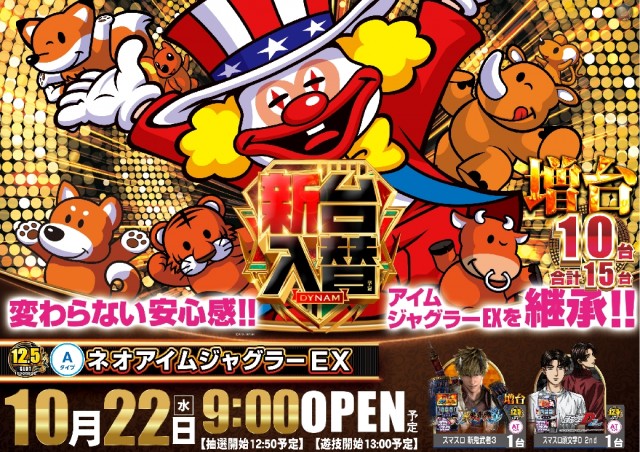 10月22日(水)新台入替(予定)