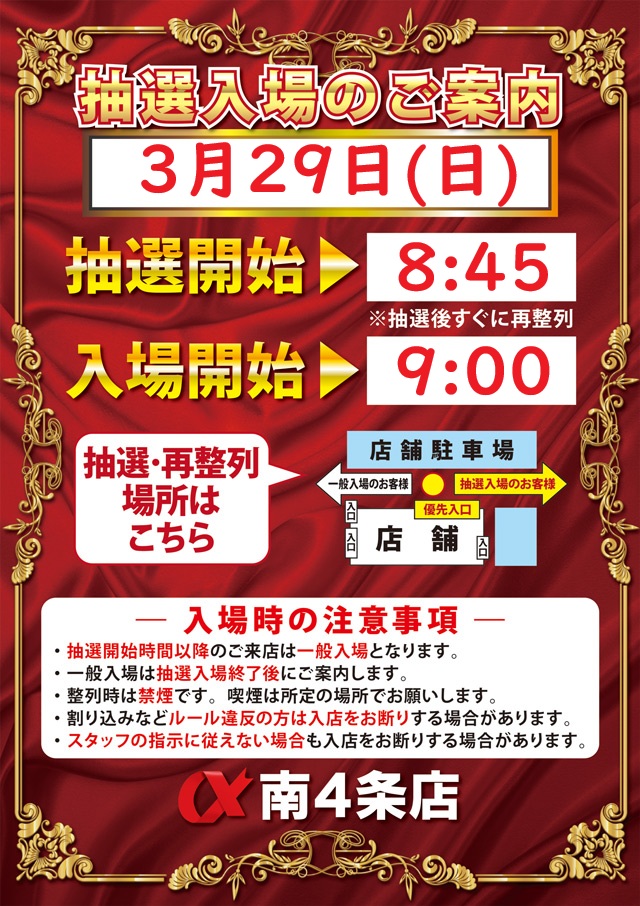 3月25日(水) 抽選8:45開始! このあとすぐ!!