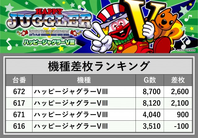 厳選された取材対象機種をはじめ、その他スロット全体から好記録が飛び出した!プレイヤーが楽しんだ1日を下記データにて振り返ってみて欲しい。